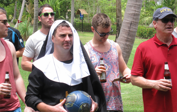 Footballers' fancy dress day for a stag party from Leicester, UK